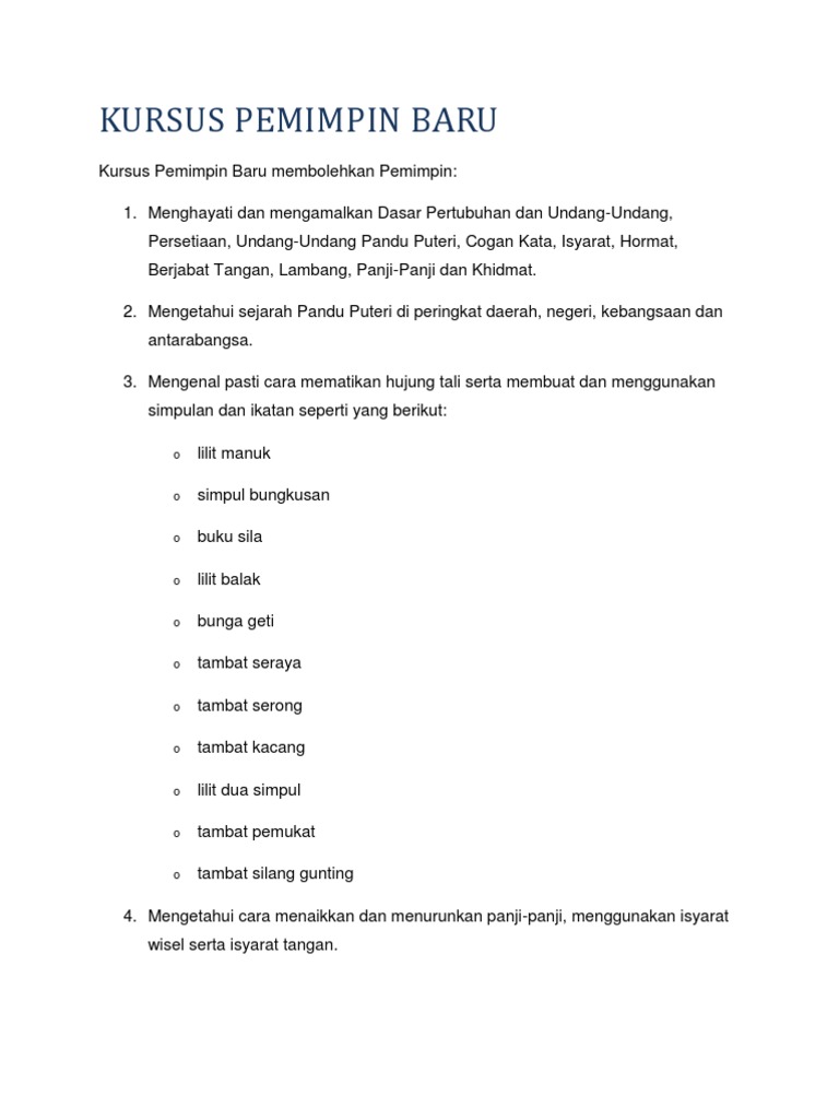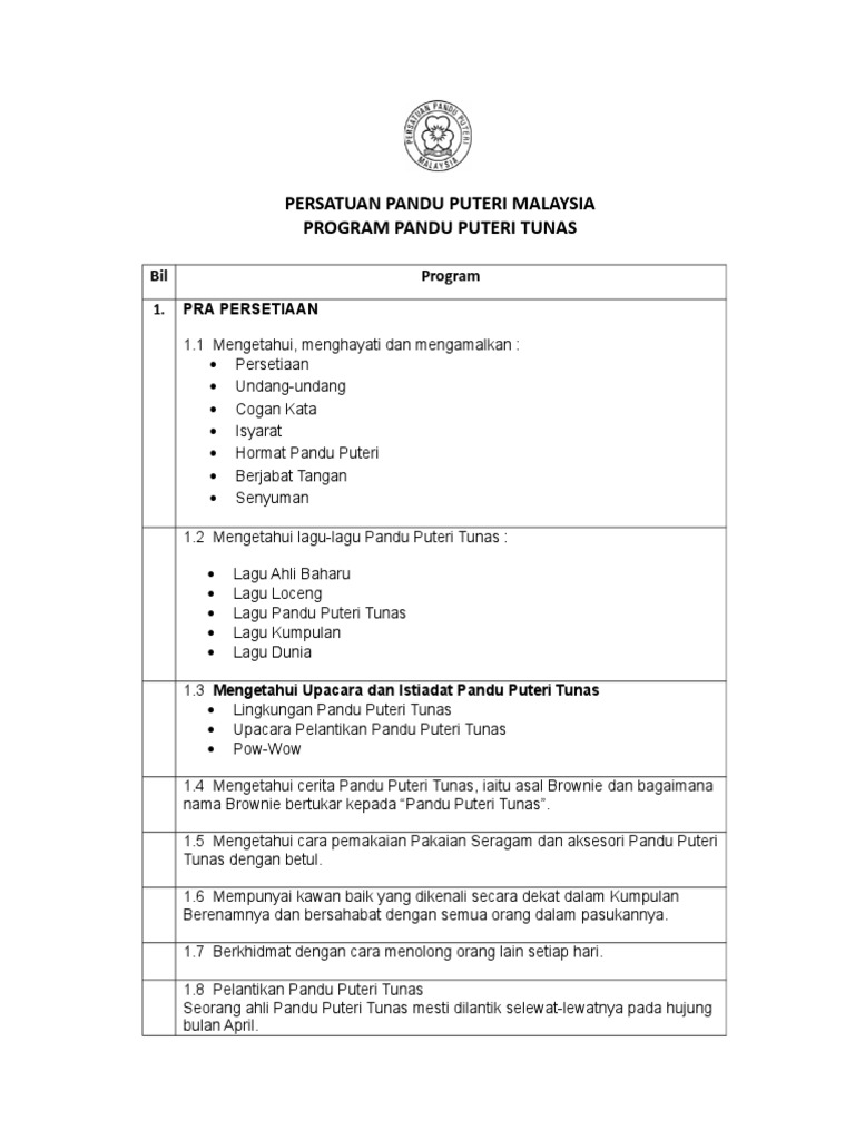 Mengetahui sejarah pandu puteri di peringkat daerah negeri kebangsaan dan antarabangsa. 7 tangan apabila berjabat tangan dengan orang kenamaan dan orang yang bukan ahli. Undang undang pandu puteri cogan kata isyarat hormat berjabat tangan lambang panji panji dan khidmat. Individu ini boleh mengendalikan pasukan pandu puteri tunas pasukan pandu puteri remaja.