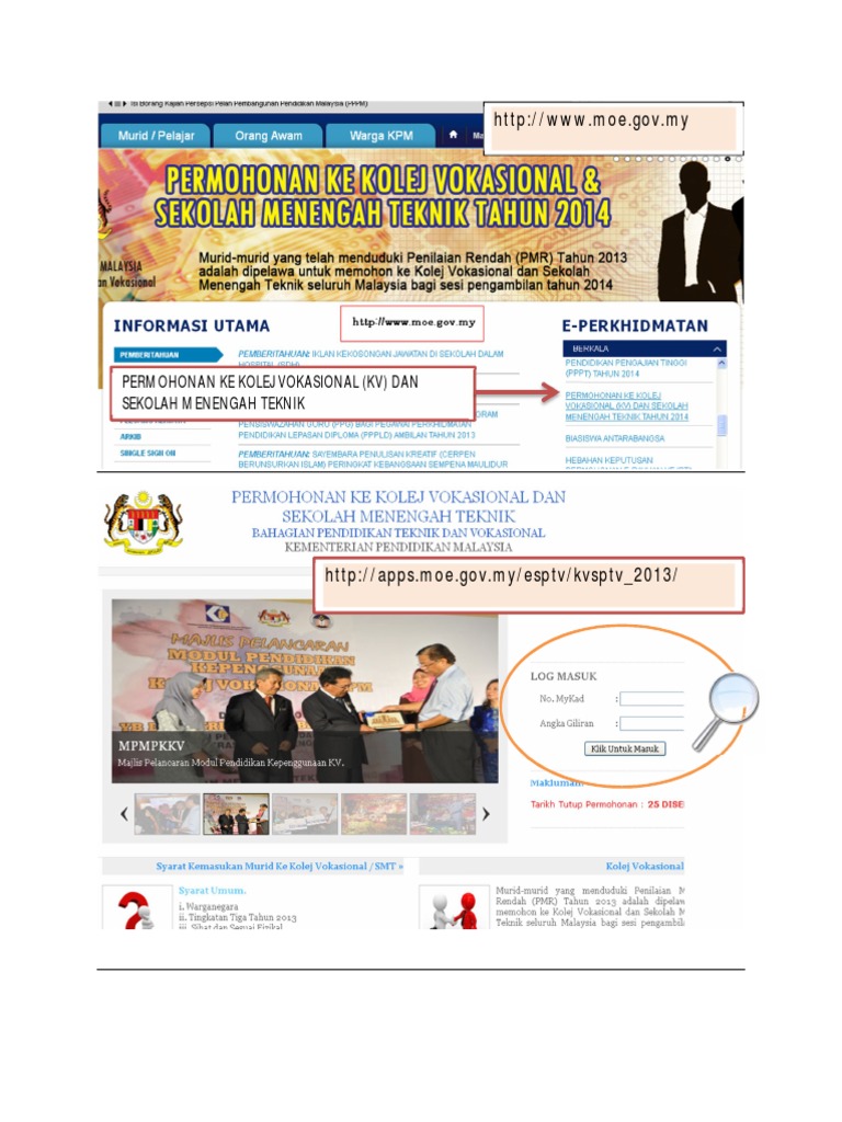 Http www moe gov my kolej vokasional. Permohonan kemasukan ke kv boleh dibuat secara online melalui laman sesawang kpm https spskt4 moe gov my. Semakan keputusan kemasukan ke kolej vokasional ambilan 2021 akan diumumkan pada 5 februari 2021 di pautan https spskt4 moe gov my. Kolej vokasional list of articles in category kolej vokasional. Program ini menyediakan murid kepada sistem kuasa arus dc ac penyelenggaraan pemasangan dan menguji elektrik domestik dan industri kawalan motor sengaraan kejuruteraan melukis dan mentafsir litar serta memahami akta elektrikal dan peraturan pemasangan yang ditetapkan.