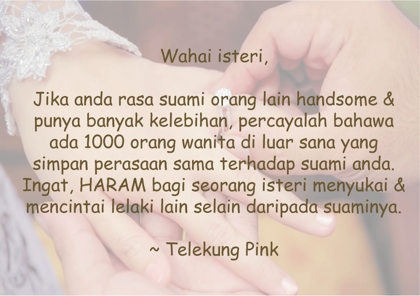 Jika suami melirik wanita lain dan istrinya melihatnya hati istri akan terasa sakit. Namun adakalanya apabila terlalu sibuk menguruskan rumah tangga wanita sebagai isteri adakala terlupa untuk memberikan perhatian dan menunjukkan kasih sayang kepada suami terutama bagi pasangan yang telah lama berkahwin. Kakak sulung asyik kena marah je. Perselisihan faham dengan pasangan dan bergaduh kecil kerana pendapat yang berbeza merupakan antara asam garam rumah tangga.