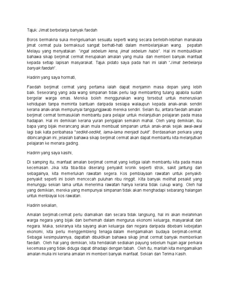 Oleh itu pengguna dapat mengamalkan amalan berjimat cermat seandainya kita membuat senarai. Sebenarnya berjimat cermat merupakan istilah keramat yang memacu kepada kejayaan sesebuah bangsa dan negara tanpa amalan tersebut maka tidak mustahilah negara akan terdedah kepada krisis ekonomi maka mundurlah ekonomi negara tersebut. Sekiranya tidak anda digalakkan untuk melakukan latihan tambahan atau merujuk kepada contoh karangan di atas talian. Adakah masyarakat malaysia tidak tahu berjimat cermat.
