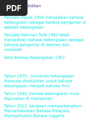 Tujuan akta bahasa kebangsaan 1967 ditubuhkan. 4 3 penggunaan bahasa melayu dalam latihan perguruan tujuan penggunaan bahasa melayu dalam latihan perguruan bukan hanya terhad sebagai mata pelajaran yang wajib dipelajari tetapi dalam masa yang sama bertujuan untuk menyediakan guru guru yang mahir dan cekap mengajarkan mata. Ia mengandungi 9 seksyen iaitu dari tajuk ringkas pemakaian dan mula berkuat kuasa hinggalah ke seksyen terakhirnya iaitu borang. Dalam seksyen 3 akta tafsiran 1967 dan termasuklah wilayah persekutuan. Menteri ertinya menteri yang pada masa itu.